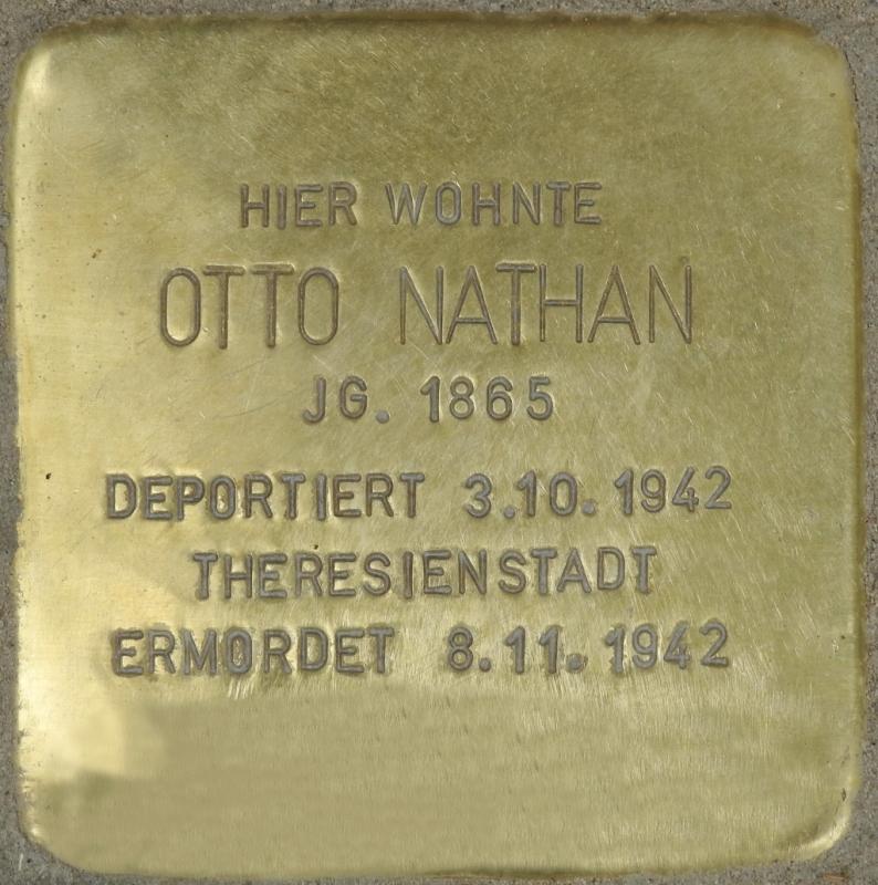 Otto und Frieda Nathan waren Geschwister und lebten zusammen in der Mommsenstraße 2, von wo aus sie gemeinsam deportiert und in einem Abstand von nur wenigen Monaten im Theresienstädter