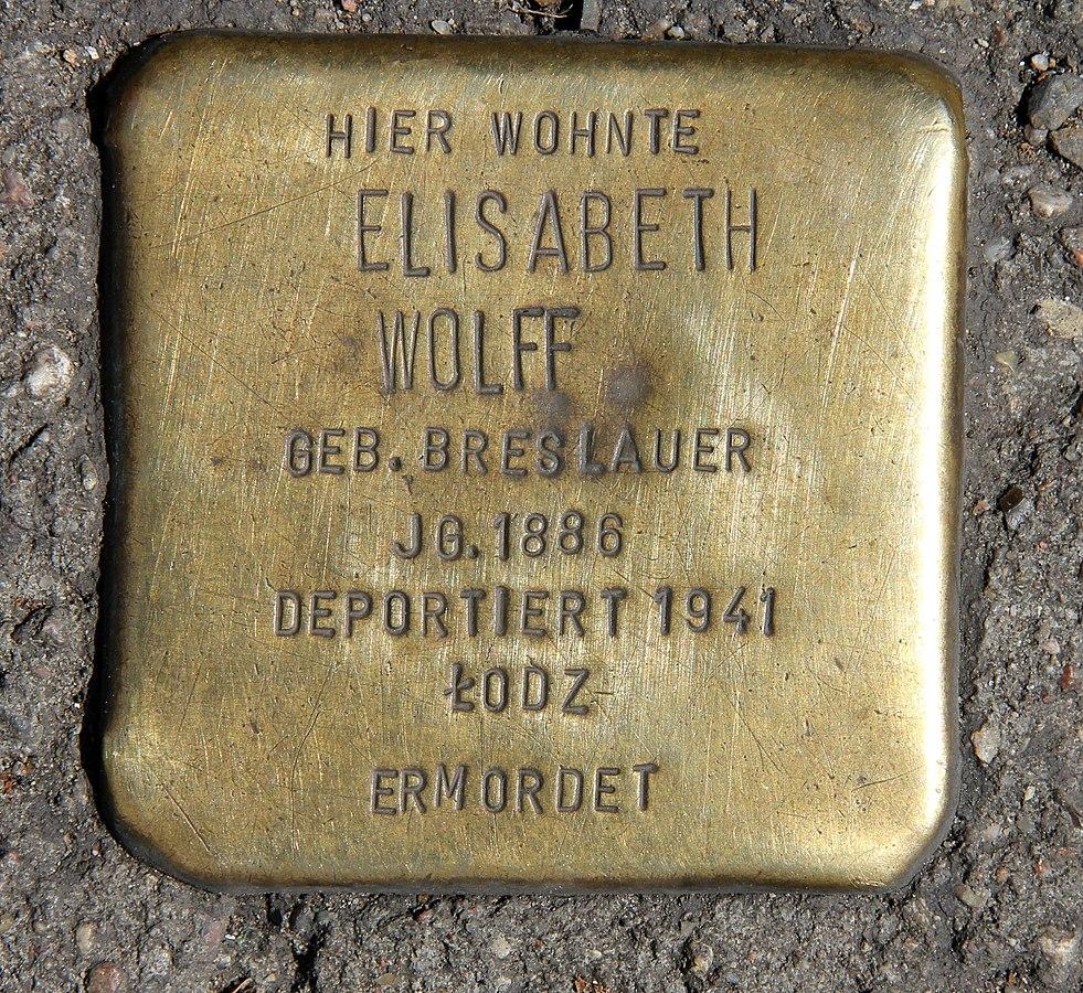 Die Eheleute Wolff wurden am 24. Oktober 1941 mit dem „II..Transport“ nach Litzmannstadt/Lodz deportiert und dort ermordet.