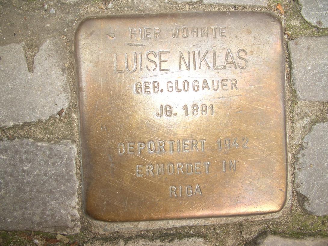 Luise Niklas geb. Glogauer wurde am 27. Januar 1891 in Lipine (Schlesien) geboren. Wann sie nach Berlin kam, welchen Beruf sie ausübte und wie ihr Leben verlief, ist nicht mehr rekonstruierbar. Auch wie ihr Mann hieß und wann er gestorben ist, lässt sich nicht herausfinden. Jedenfalls wohnte sie 1939 als Untermieterin der Familie Frankenbach in der Nassauischen Straße 30. Luise Niklas wurde von dort am 19. Januar 1942 nach Riga (Lettland) deportiert und nach ihrer Ankunft auf dem Bahnhof Skirotava ermordet.