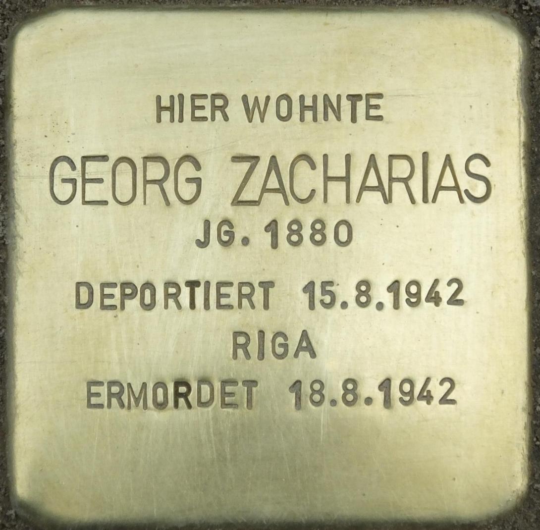 Über die letzten Jahre in der Pariser Straße 11, die Georg Zacharias mit seinen Schwestern und Nanny Krombach verbrachte, ist wenig bekannt. Die Geschwister Zacharias wurden am 15. August 1942 vom Güterbahnhof Putlitzstraße in Moabit nach Riga-Sakirotva deportiert und dort drei Tage später in den Wäldern von Rumbula und Bikernieki ermordet.