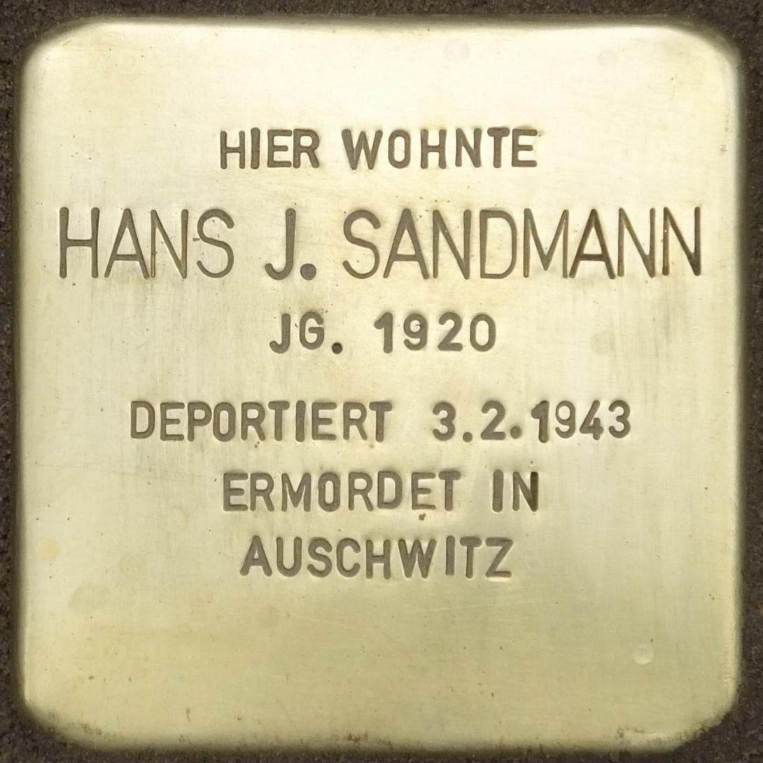 Hans Sandmann wurde zusammen mit seiner Mutter am 3. Februar 1943 mit dem sogenannten „28.Osttransport“ nach Auschwitz verschleppt und dort sofort ermordet.