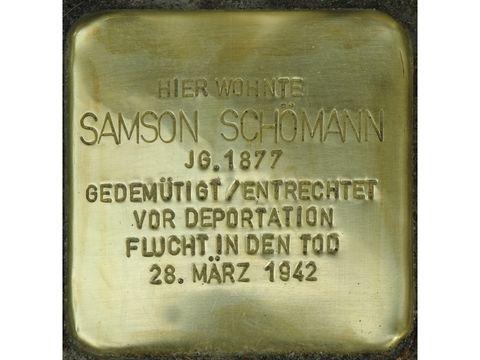 1941 wurde das Ehepaar Schömann zwangsweise in das sogenannte „Judenviertel“ in die damalige Prenzlauer Straße 16 umgesiedelt, wo sich die Firma von Samson Schömann befand. Um sich der Festnahme durch die Gestapo zu entziehen, nahm sich Samson Schömann am 28. März 1942 das Leben. In einem Schreiben der Geheimen Staatspolizei (Gestapo) an den Oberfinanzpräsidenten Berlin-Brandenburg, Vermögensverwaltung, vom 22. Mai 1942, wird geschrieben: „Liste der Juden, die vor der Evakuierung Selbstmord begangen haben, bzw. geflüchtet sind. Das Vermögen habe ich beschlagnahmt“. In dieser Liste ist Samson Schömann genannt. Auch in einem Brief von Sackgroßhändler Heinz Franke an den Sohn Erwin Schömann vom 28. Juli 1947 ist dies bestätigt: „Von Ihrem sehr geehrten Herrn Vater konnte ich sorgfältig in Erfahrung bringen, daß er kurz vor Erscheinen der Gestapo den Freitod wählte, um sich der Festnahme zu entziehen.“