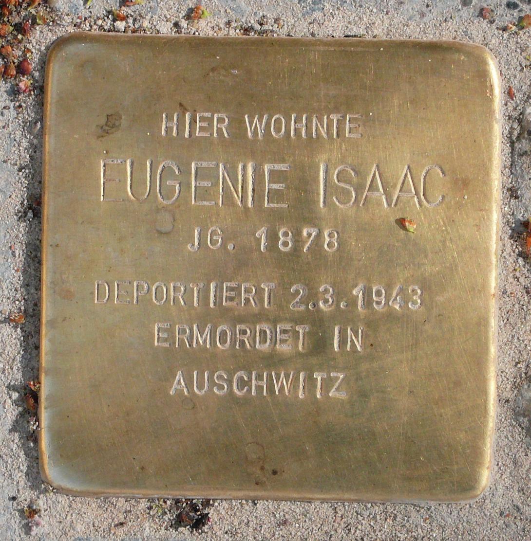 Am 2. März 1943 wurde Eugenie Isaac in das Vernichtungslager Auschwitz deportiert und dort umgebracht.