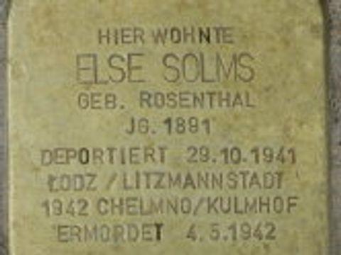 Else Rosenthal wurde am 28. August 1891 in Lauban, Schlesien geboren. Sie war schon in jungen Jahren an Musik interessiert und wurde eine talentierte Pianistin, die häufig öffentliche Konzerte gab. Als sie Martin Solms kennenlernte und ihn heiratete, musste sie ihre berufliche Karriere vernachlässigen. Sie spielte zwar noch Klavier, gab aber nur noch zu Hause kleine Konzerte. Als das erste Kind Werner Adolf im Jahr 1911 geboren wurde und besonders seit der Geburt der kleinen Erika 1918 musste sie sich um die Kinder und den Haushalt kümmern. Gerade die kranke Tochter bereitete der Mutter große Sorgen. Trotz aller Fürsorge starb die elfjährige Erika 1930 in einer Klinik in Zürich an Leukämie.