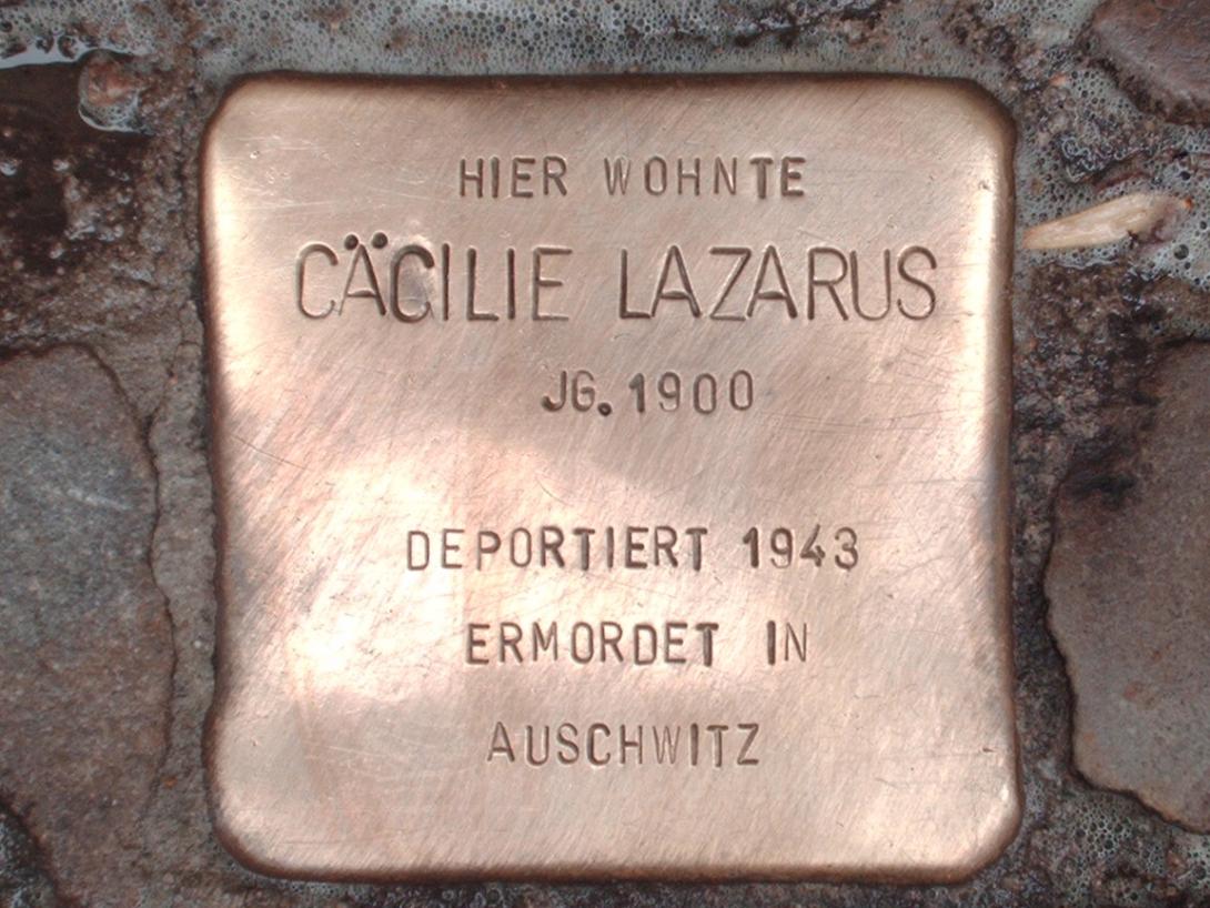 Der Entrechtung folgte die Deportation : Cäcilie Lazarus erhielt den Deportationsbescheid zusammen mit ihrer Schwester, deren Ehemann und Kindern sowie den Pflegetöchtern im Frühjahr 1943. Sie alle mussten die Wohnung in der Reichenberger Straße 181 räumen und wurden in das Sammellager in der Großen Hamburger Straße 26 verschleppt. Am 21. Februar 1943 mussten alle Familienmitglieder im Sammellager eine 16-seitige „Vermögenserklärung“ zu den ihnen verbliebenen Habseligkeiten mitsamt dem zurückgelassenen Hausrat ausfüllen, welche später von der Gestapo zusammen mit den Transportlisten an den Oberfinanzpräsidenten Berlin-Brandenburgs geschickt wurde und der „Verwertung des eingezogenen Vermögens von Reichsfeinden“ diente. Fünf Tage später, am 26. Februar 1943, wurden die damals 42-jährige Cäcilie Lazarus und ihre Familienangehörigen mit dem „30. Osttransport“ aus Berlin in das Vernichtungslager Auschwitz deportiert und dort ermordet.