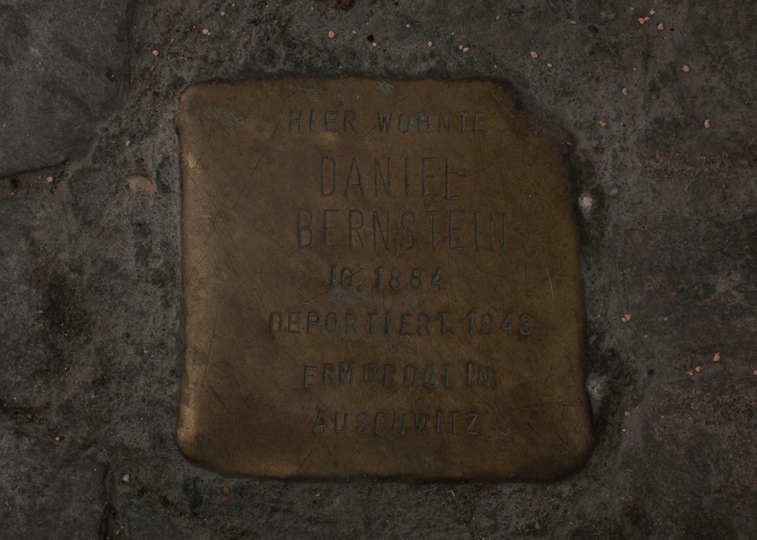 Daniel Bernstein, geboren am 7. Mai 1884 in Berlin, war mit Ella Bernstein geb. Schweriner verheiratet. Im Adressbuch war er mit dem Beruf Redakteur, später auch Handelsredakteur, sowie als Chefredakteur oder Schriftleiter eingetragen. Beide wohnten seit vielen Jahren in Berlin, seit 1923 in der Ringbahnstraße 5, und wurden am 19. Februar 1943 nach der Verhaftung der auf der Flucht in Hamburg ergriffenen Ehefrau von Berlin aus in einem Güterzug mit 997 Menschen, von denen 772 sofort vergast worden sind, nach Auschwitz deportiert und ermordet. Ob auch Daniel Bernstein selbst an dem Fluchtversuch teilnahm, ist nicht mehr einwandfrei nachzuweisen. Jedenfalls wurde das Ehepaar in das Sammellager an der Großen Hamburger Straße 26, vorher ein jüdisches Altersheim, verschleppt