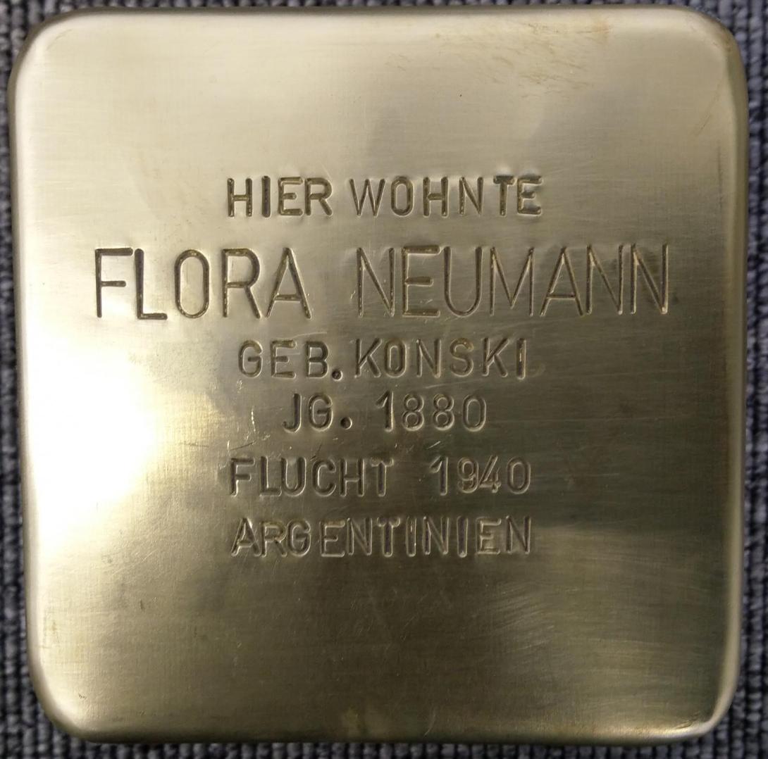 Flora Neumann wurde als Flora Konski am 10. Dezember 1880 in Schroda/Posen in eine jüdische Familie geboren. Mit 12 Jahren zog sie mit ihren Eltern nach Berlin. Zu ihrer Familie ist weiter nichts bekannt.