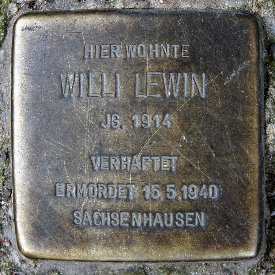 Die Beziehung zu einer „deutschblütigen“ Frau erregte Aufmerksamkeit. Wegen „ Rassenschande “ wurde Willi Lewin am 31. Mai 1938 verhaftet und kam am 3. Juni 1938 in Untersuchungshaft ins Untersuchungsgefängnis Alt-Moabit 12a. Am 10. August 1938 leitete der Generalstaatsanwalt beim Landgericht Berlin die Anklage gegen Willi Lewin an die 8. Große Strafkammer weiter. Am 1. April 1939 verurteilte das Landgericht Berlin Willi Lewin wegen Rasseschande zu einem Jahr und sechs Monaten Zuchthaus. Die Strafe verbüßte Willi Lewin unter Anrechnung seiner zehnmonatigen Untersuchungshaftzeit im Zuchthaus Luckau in der Niederlausitz. Noch im April 1939 informierte der Generalstaatsanwalt beim Landgericht Berlin die Kripoleitstelle in der Alexanderstraße in Berlin-Mitte über die Vorwürfe gegen Willi Lewin. Nach Verbüßung seiner Haftstrafe wurde er „vorbeugend“ am 9. Dezember 1939 erneut in Haft genommen und kam ins Polizeigefängnis Berlin. Am 16. Dezember 1939 wurde er in das nahe Berlin gelegene Konzentrationslager Sachsenhausen verlegt. Dort verstarb Willi Lewin am 15. Mai 1940 an „Zellgewebsentzündung und Herzschwäche“.