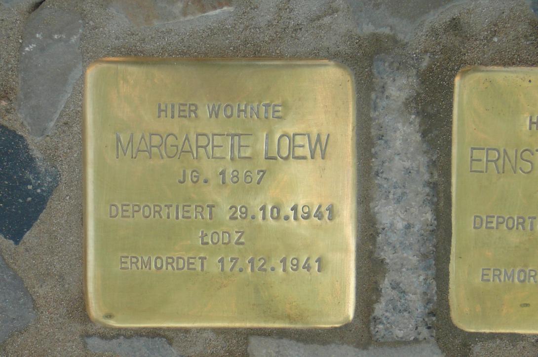 Das Ghetto wurde bereits 1940 durch die deutschen Besatzer von der polnischen Industriestadt Lodz – von den Nationalsozialisten Litzmannstadt genannt - abgetrennt und mit Stacheldraht umzäunt. Etwa 160 000 Juden aus Lodz wurden in die äußerst ärmlichen Häuser gepfercht. Im Oktober 1941 wurden weitere 20 000 Juden aus dem „Altreich“ in das völlig überfüllte Ghetto deportiert. Am 27. Oktober ging von Gleis 17 im Grunewald der dritte „Transport“ mit über 1 000 Juden von Berlin ab, unter ihnen Margarete Loew und Ernst Heymann.