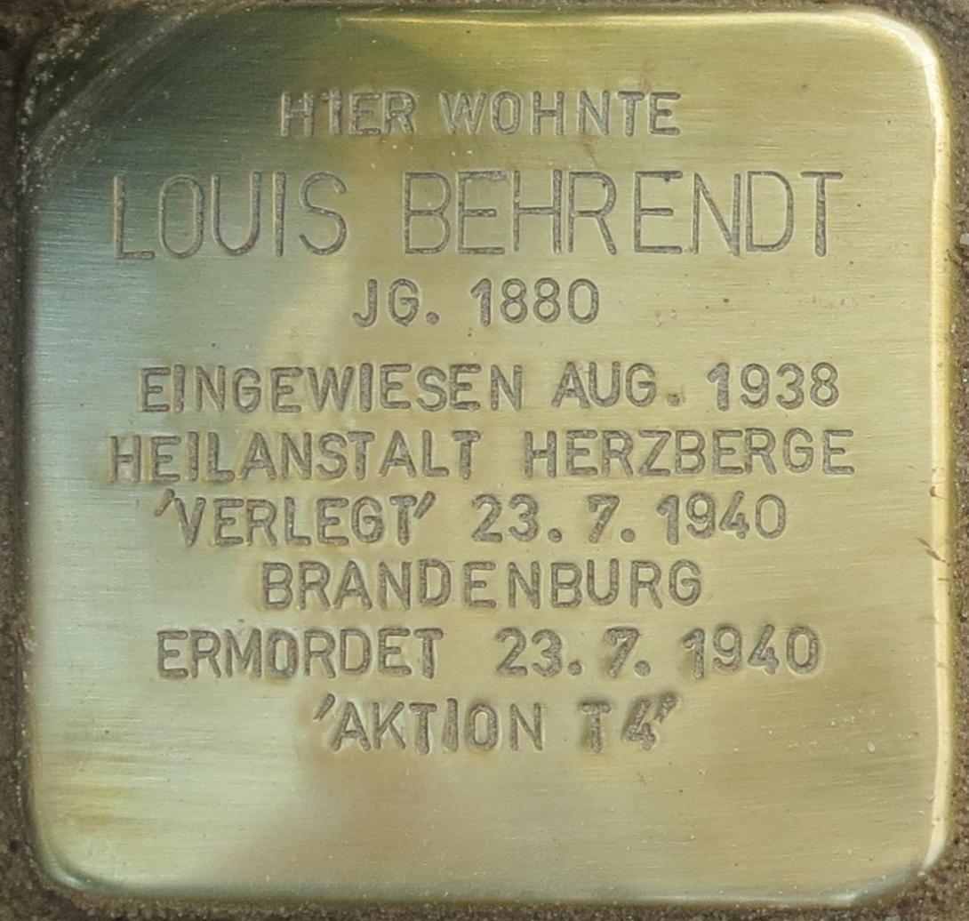 Erst 2015 konnten mit Hilfe von Dr. Ute Hoffmann, Leiterin der Gedenkstätte für die Opfer der NS-“Euthanasie“ Bernburg, die wahren Todesumstände von Louis Behrendt aufgeklärt werden.