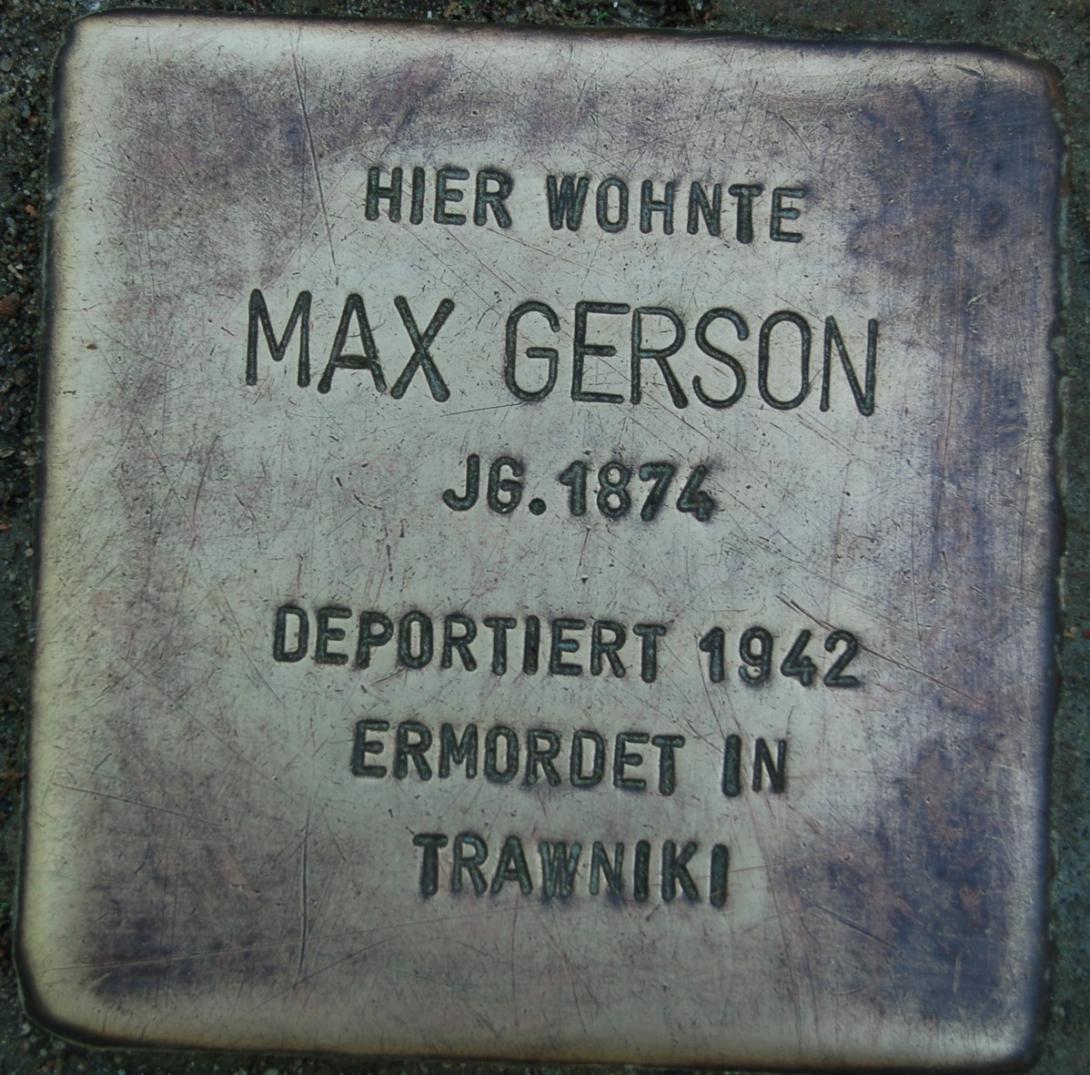 Max Gerson kam am 3. Juni 1874 in Seesen als Sohn des Lehrers Samuel Gerson und seiner Frau Rosa geborene Aron zur Welt. Seine Mutter stammte aus Schwerin, wo seine Eltern 1873 geheiratet hatten, sie lebten dann aber in Seesen, denn sein Vater war hier als Lehrer tätig. Max hatte eine Schwester Elsa (1880) und einen Bruder Ernst (1878). Sein Vater starb 1896, dann zog Elsa mit ihrer Mutter nach Schwerin.