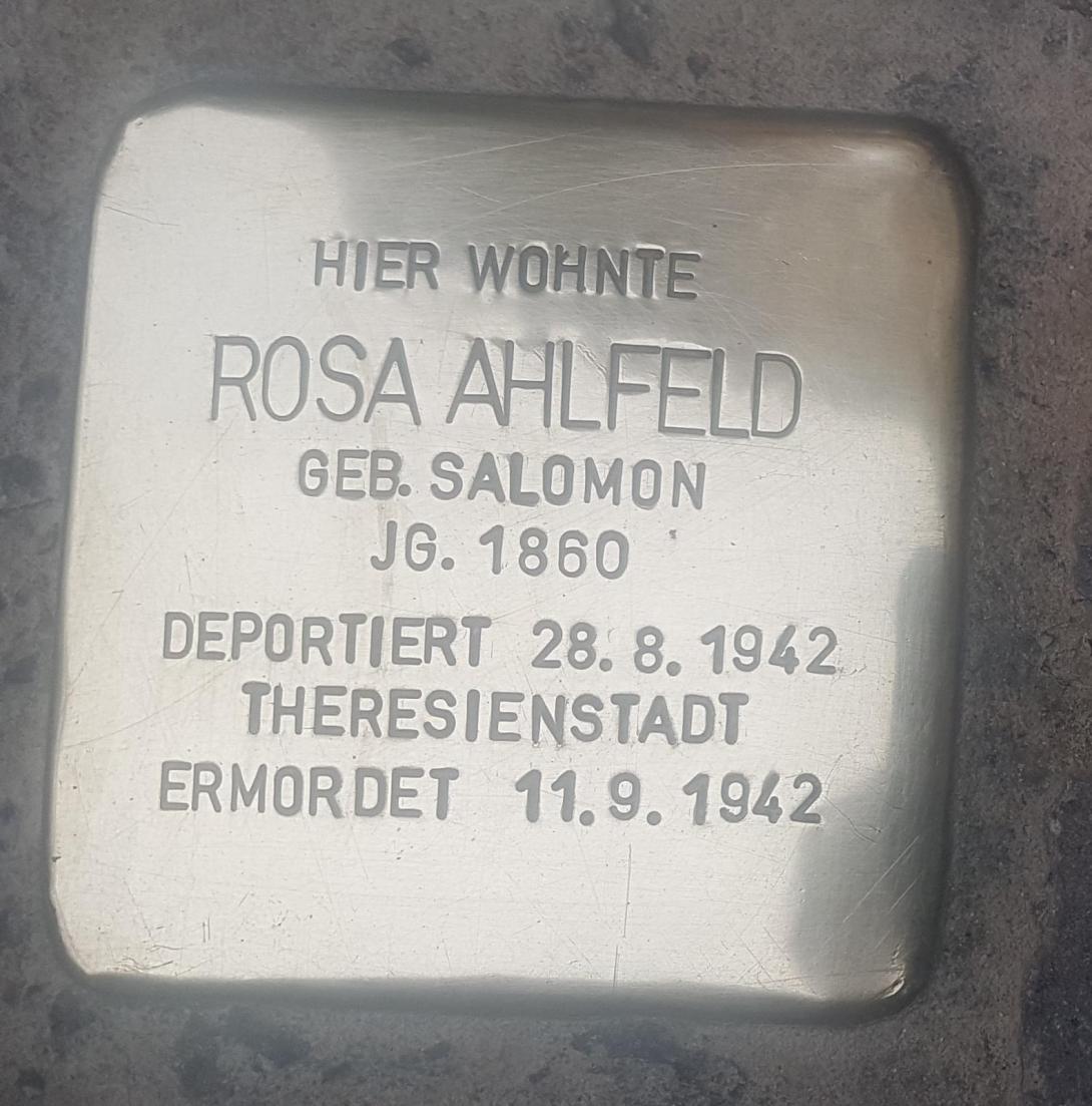 Together with her daughter and son-in-law, Rosa Ahlfeld was deported to Theresienstadt on August 28, 1942. Erich Schlesinger was murdered on September 10th. Rosa Ahlfeld was murdered a day later on September 11, 1942.