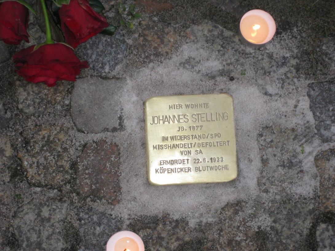 Unmittelbar nach den Ereignissen im Hause Schmaus, bei denen drei SA-Leute in Notwehr niedergeschossen worden waren, tauchte die SA mitten in der Nacht auch bei Johannes Stelling in der nahegelegenen Dahlwitzer Straße 36 (heute Stellingdamm 36) auf und nahm ihn widerrechtlich fest. Wie andere Verschleppte auch, wurde er zunächst in das SA-Lokal „Seidler“ in der Mahlsdorfer Straße und später in das von der Köpenicker SA als Hauptquartier genutzte Amtsgerichtsgefängnis gebracht. Hier steigerte die SA die Brutalität der bereits bei „Seidler“ vorgenommen Misshandlungen in einem kaum vorstellbaren Ausmaß. Der 56-Jährige wurde im ehemaligen Amtsgerichtsgefängnis von der SA aufs Schwerste misshandelt und schließlich ermordet.