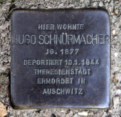 Hugo Schnürmacher came from Vienna, where he was born on 29 August 1877. He moved to Berlin-Mitte, probably around the turn of the century, and in 1912 married Karoline Gerbsch, an “Aryan” from Berlin. They registered the birth of three children, but it is thought they had more children later. In 1940 Hugo and Karoline Schnürmacher divorced. Hugo Schnürmacher and his two elder unmarried daughters moved out of the family home on Veteranen Strasse to a 3-room apartment on the ground floor of the front-facing house at Strelitzer Strasse 3 in Berlin-Mitte, N31. In 1943, Hugo Schnürmacher’s daughters were deported, half a year before his own deportation to Theresienstadt, on the “99th transport of the elderly”, on 10 January 1944. On 15 May 1944 he was taken to Auschwitz where he was probably murdered on arrival.