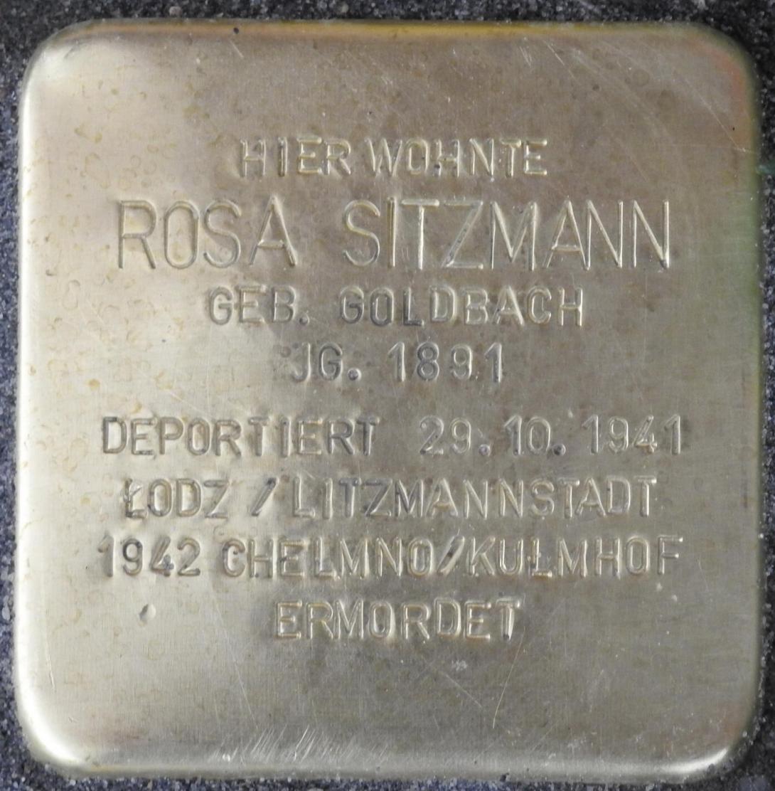 Rosa Sitzmann wurde am 5. März 1891 geboren. Ihre Eltern waren der Pferdehändler Jakob Goldbach und Emma Goldbach, geborene Adler. Die jüdischen Familien in Unterriedenberg lebten früher vor allem vom Viehhandel.