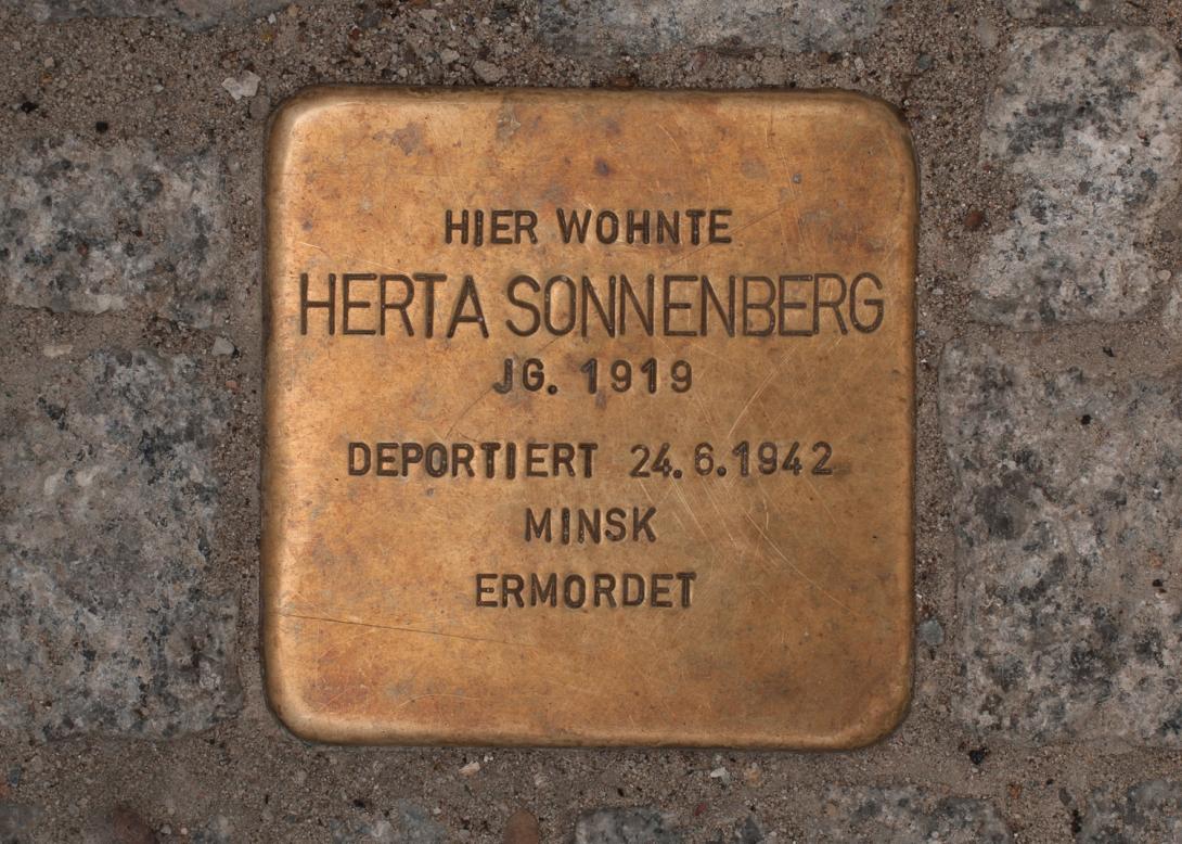Herta Sonnenberg wurde eines Tages aus dem Krankenhaus herausgeholt, in die als Sammellager missbrauchte Synagoge an der Levetzowstaße in Moabit verschleppt und am 24. Juni 1942 mit einem Zug, der in ihrer Geburtsstadt Königsberg hielt und dort weitere Juden aufnehmen musste, nach Minsk deportiert. 770 Menschen kamen in Minsk an, darunter Cora Berliner und Paula Fürst, zu deren Andenken ebenfalls Stolpersteine verlegt worden sind. Dort ist sie an einem nicht bekannten Tag, vermutlich bei einer Massenerschießung, ermordet worden.