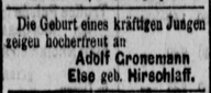 Else und Adolf Gronemann hatten außer der Tochter Erna noch einen Sohn, Karl Louis. Er war zwei Jahre älter als Erna – geboren am 29. März 1908. Karl Luis wurde am 13. Juni 1938 in „Schutzhaft“ genommen und sogleich im Konzentrationslager Buchenwald interniert, wo er am 17. November ums Leben gebracht wurde.