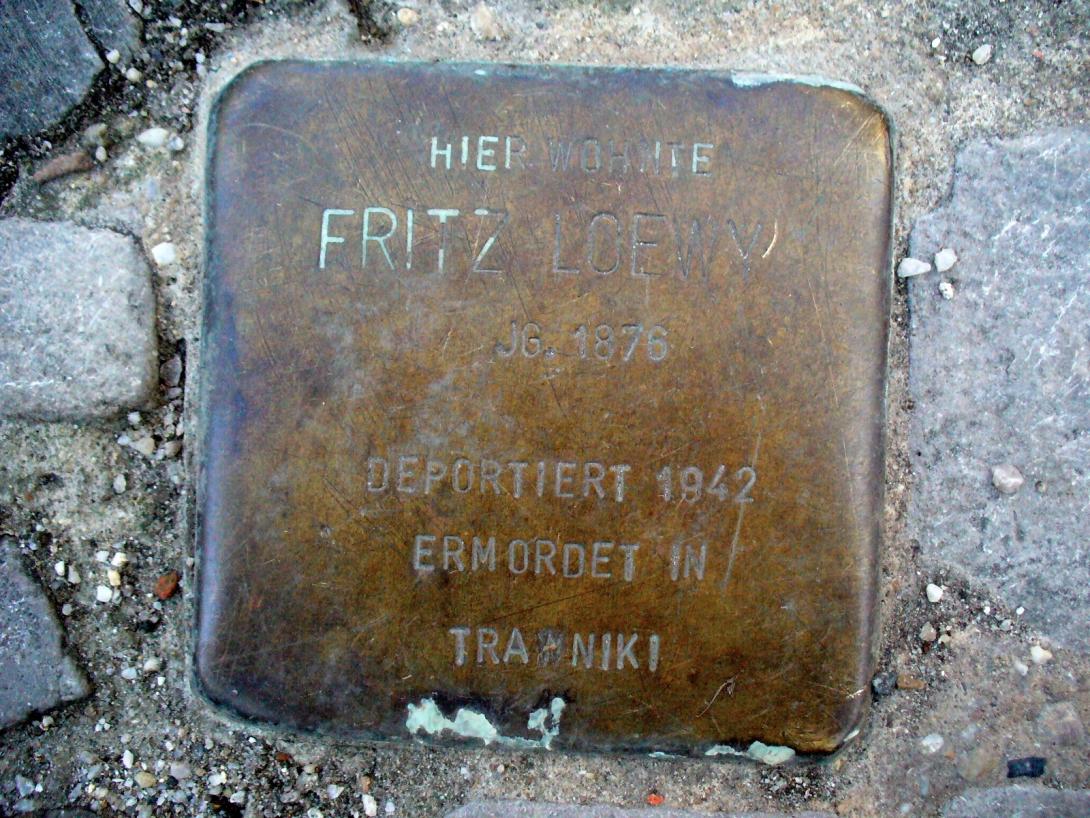 Fritz Loewy ist am 25. Mai 1876 in Lublinitz (Lubliniec/Polen) geboren. Er war mit Vally Loewy, auch „Wally“ geschrieben, verheiratet. Im Adressbuch 1939 war er mit der Anschrift Wilhelmsaue 3 als Kaufmann eingetragen. In welcher Branche er tätig war, ist nicht mehr herauszufinden. Am 2. April 1942 wurde Fritz Loewy zusammen mit seiner Frau in einem Zug, der ursprünglich nach Trawniki fahren sollte, mit 1025 Menschen in das Warschauer Ghetto deportiert, wo er umgekommen ist.